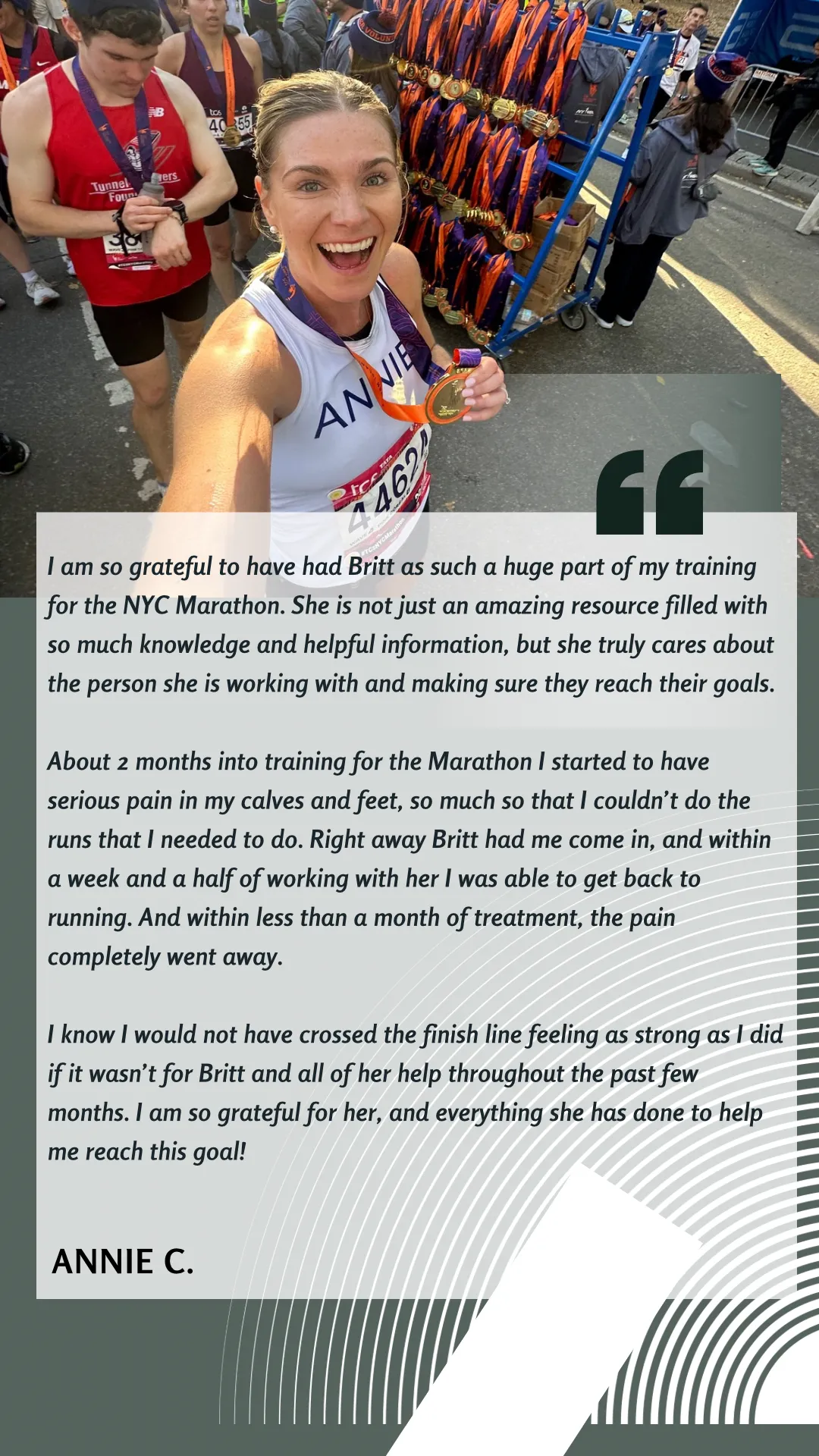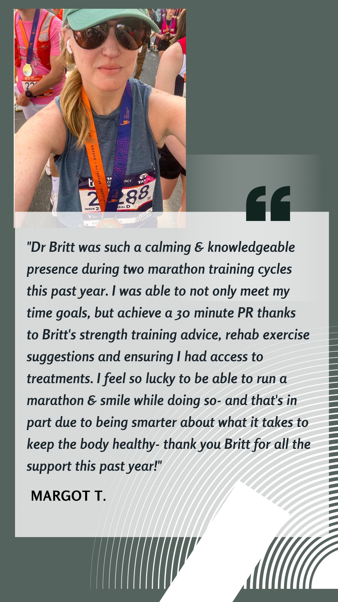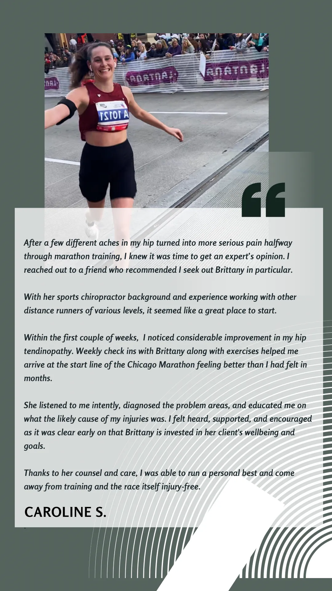 As a sports-rehab chiropractor, she has helped hundreds of patients continue training and participating in their sport, including professional hockey players, amateur golfers & recreational marathon runners.
